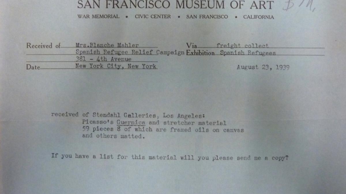 Acta de entrega de Guernica y otros materiales enviados por la Spanish Refugee Relief Campaign al San Francisco Museum of Art