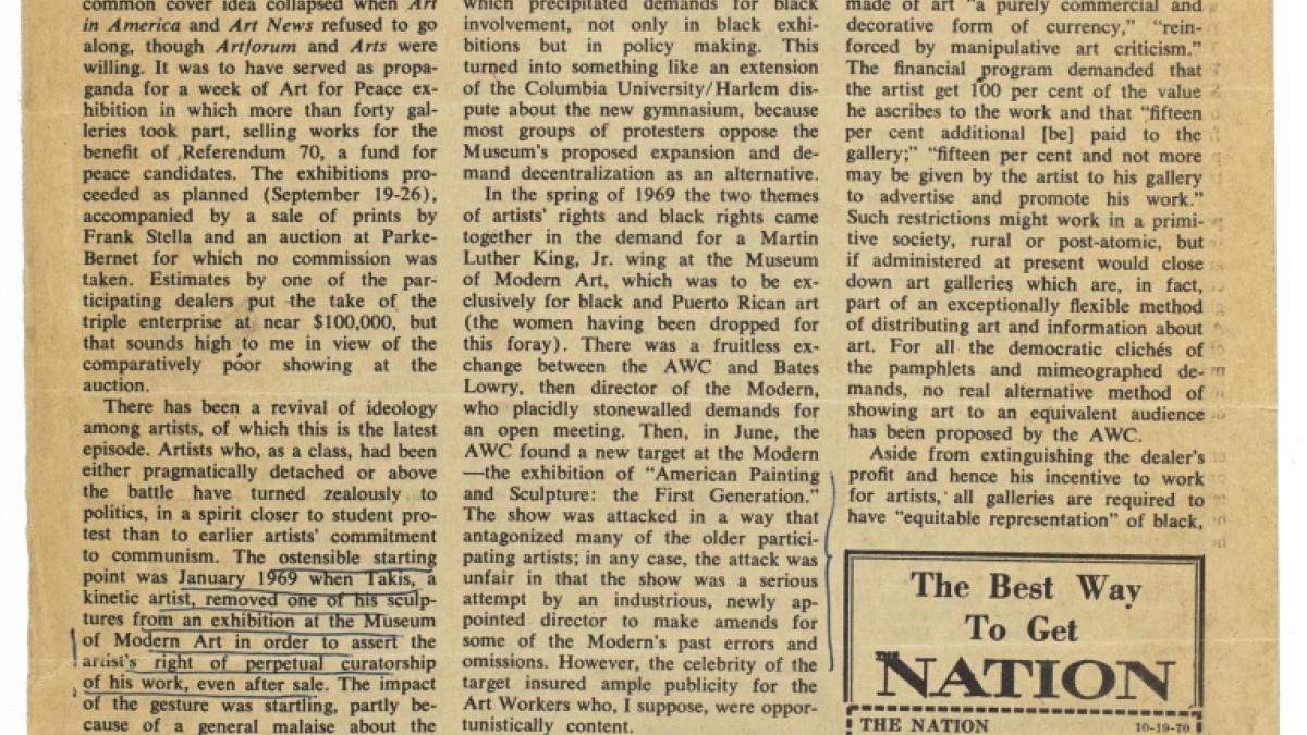 Lawrence Alloway, «Art», The Nation, 19 de octubre, 1970.