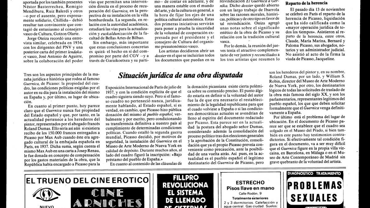 Patxo Unzueta, «Artistas vascos reivindican para Guernica el famoso cuadro de Picasso», El País, 4 de diciembre, 1979.