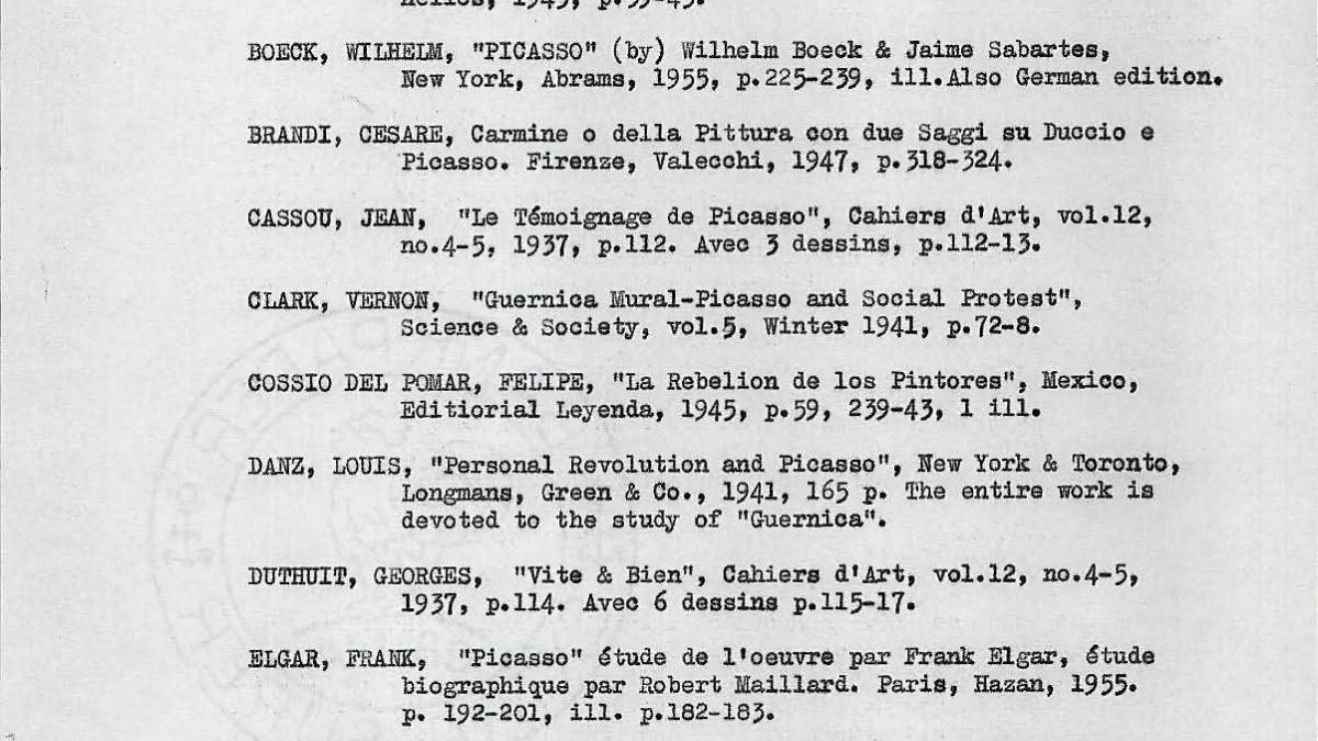 Bibliografía del libro escrito por Alfred H. Barr, Picasso: Fifty Years of his Art