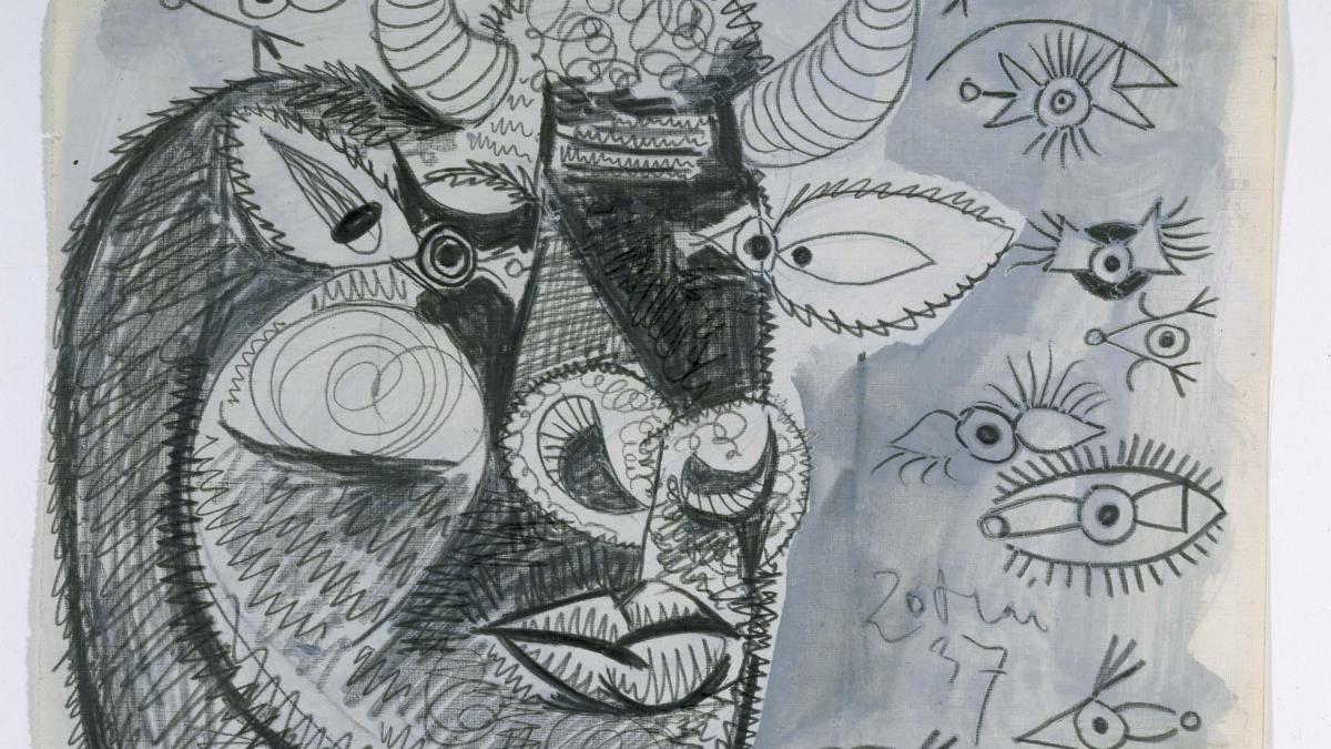 Cabeza del toro con estudios de ojos. Dibujo preparatorio para Guernica