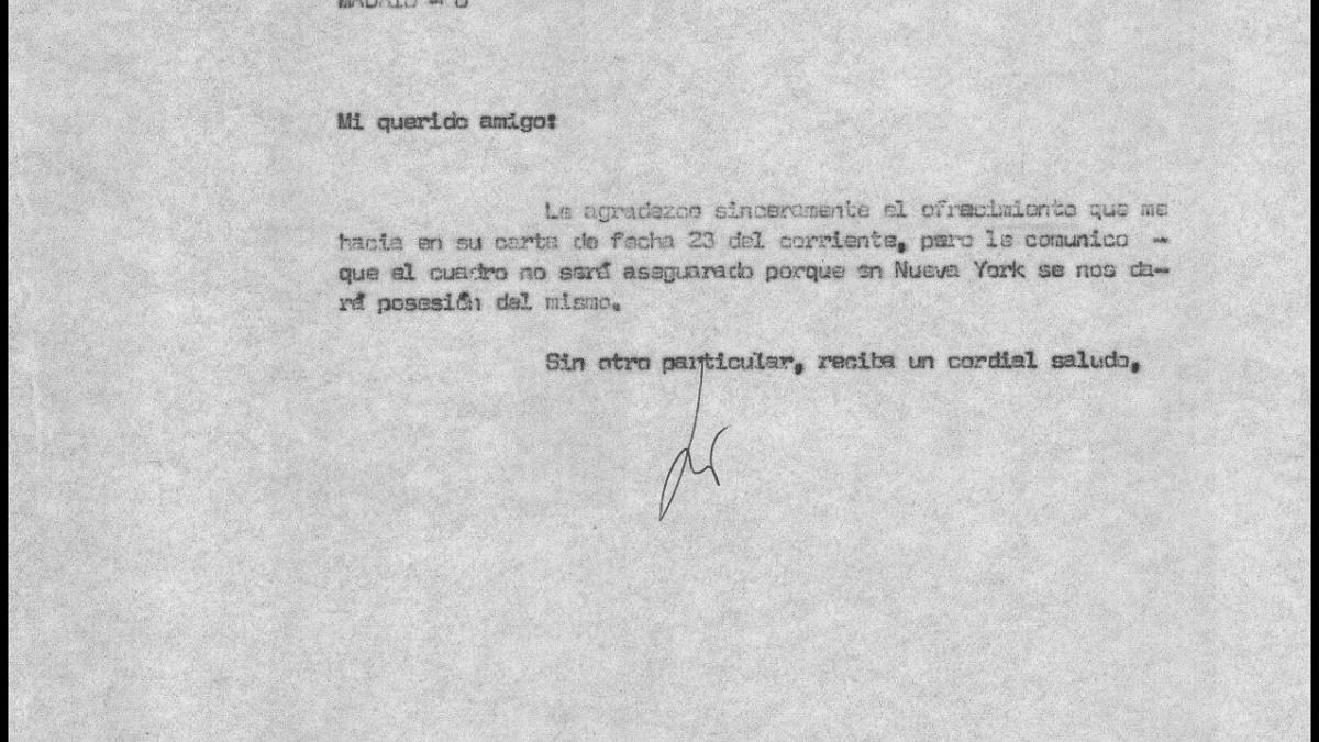 El abogado Alejandro de Muns escribe a Javier Tusell, director general de Patrimonio Artístico, Archivos y Museos del Ministerio de Cultura, sobre el precio del seguro de Guernica.