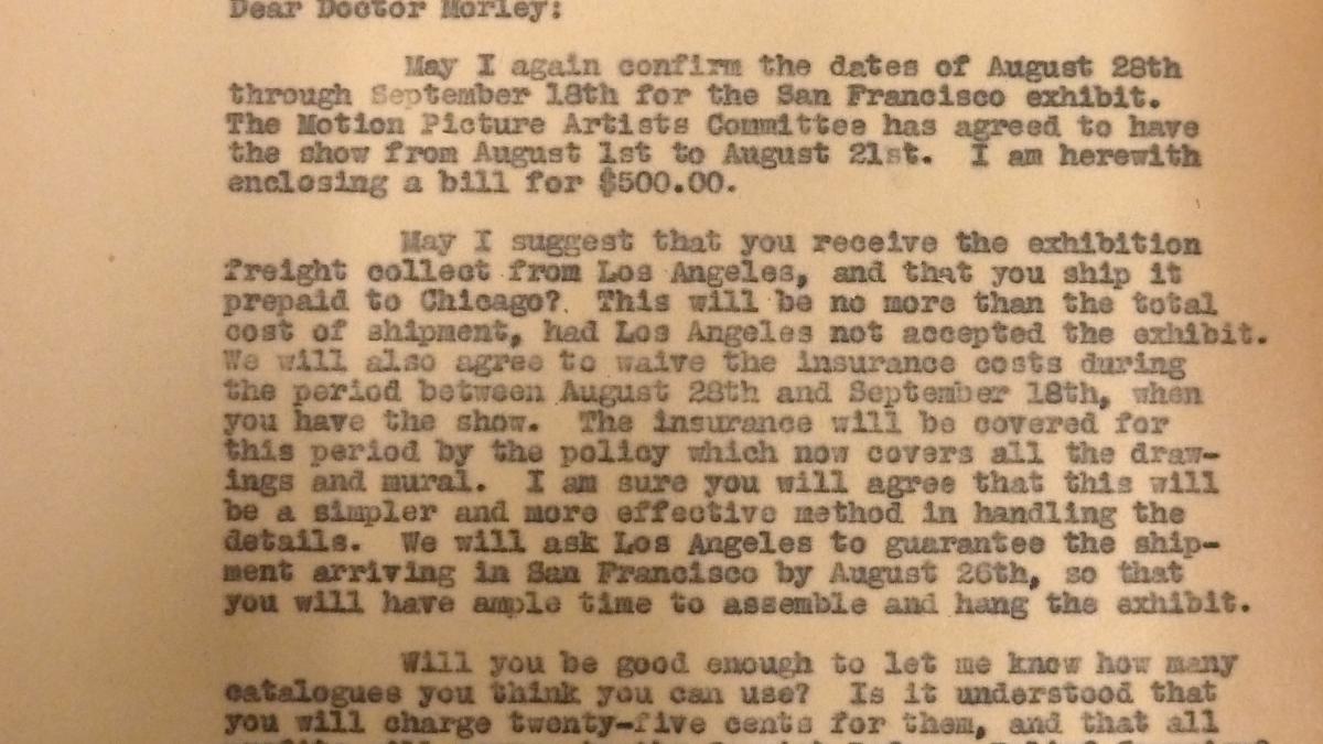 Blanche Mahler, del Departamento de Campaña del Spanish Refugee Relief Campaign, envía a Grace L. McCann Morley, directora de San Francisco Museum of Art, la factura de la exposición dirigida al Medical Bureau and North American Committee to Aid Spanish Democracy.