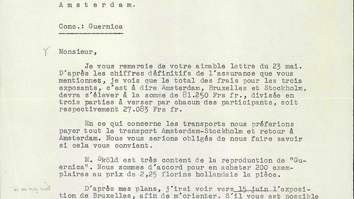 Bo Wennberg, jefe del Departamento de Arte Moderno del Nationalmuseum de Estocolmo, se dirige a Willem Sandberg, director del Stedelijk Museum, para hablar de los gastos de transporte de la exposición entre Ámsterdam, Bruselas y Estocolmo.