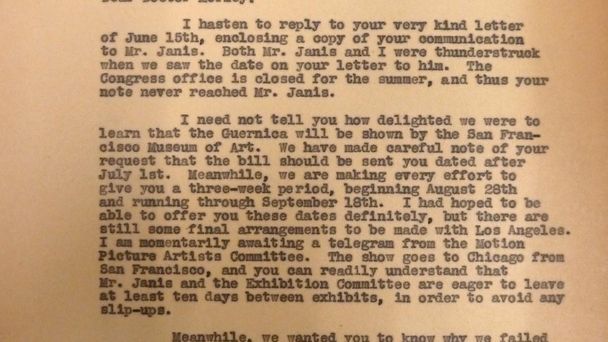 Spanish Refugee Relief Association Record, 1935-1957, Part B: General Office Files Box 25: Picasso Tour