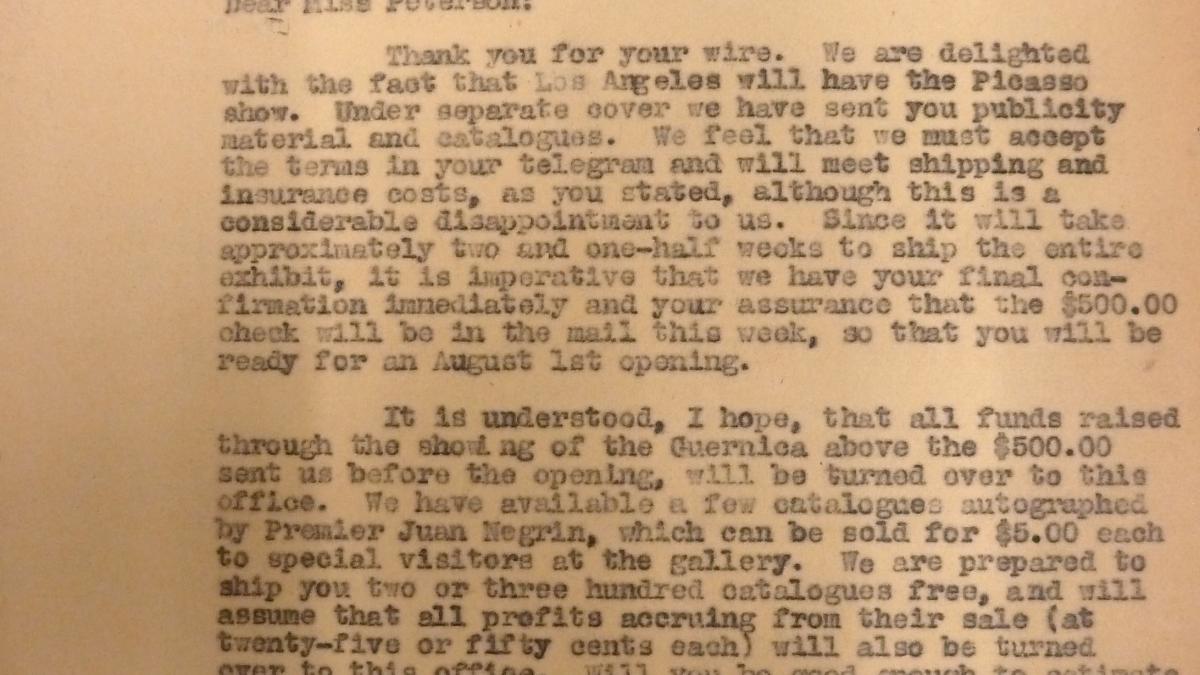 Spanish Refugee Relief Association Record, 1935-1957, Part B: General Office Files Box 25: Picasso Tour