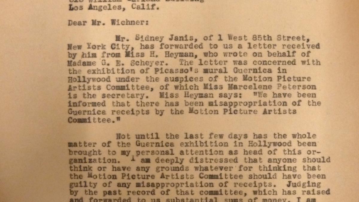 Spanish Refugee Relief Association Record, 1935-1957, Part B: General Office Files Box 25: Picasso Tour