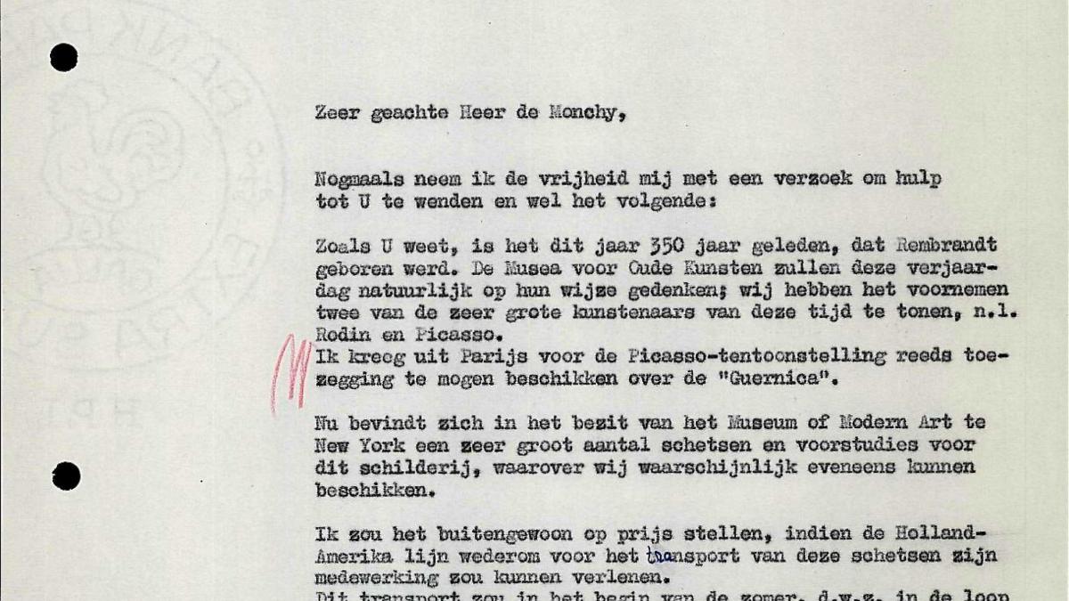 Willem Sandberg, director del Stedelijk Museum, escribe a la empresa Holland-Amerika Lijn sobre cuestiones de transporte.
