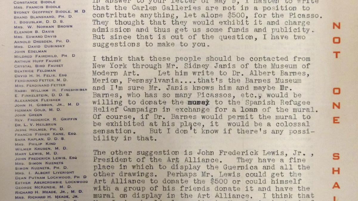 Spanish Refugee Relief Association Record, 1935-1957, Part B: General Office Files Box 25: Picasso Tour