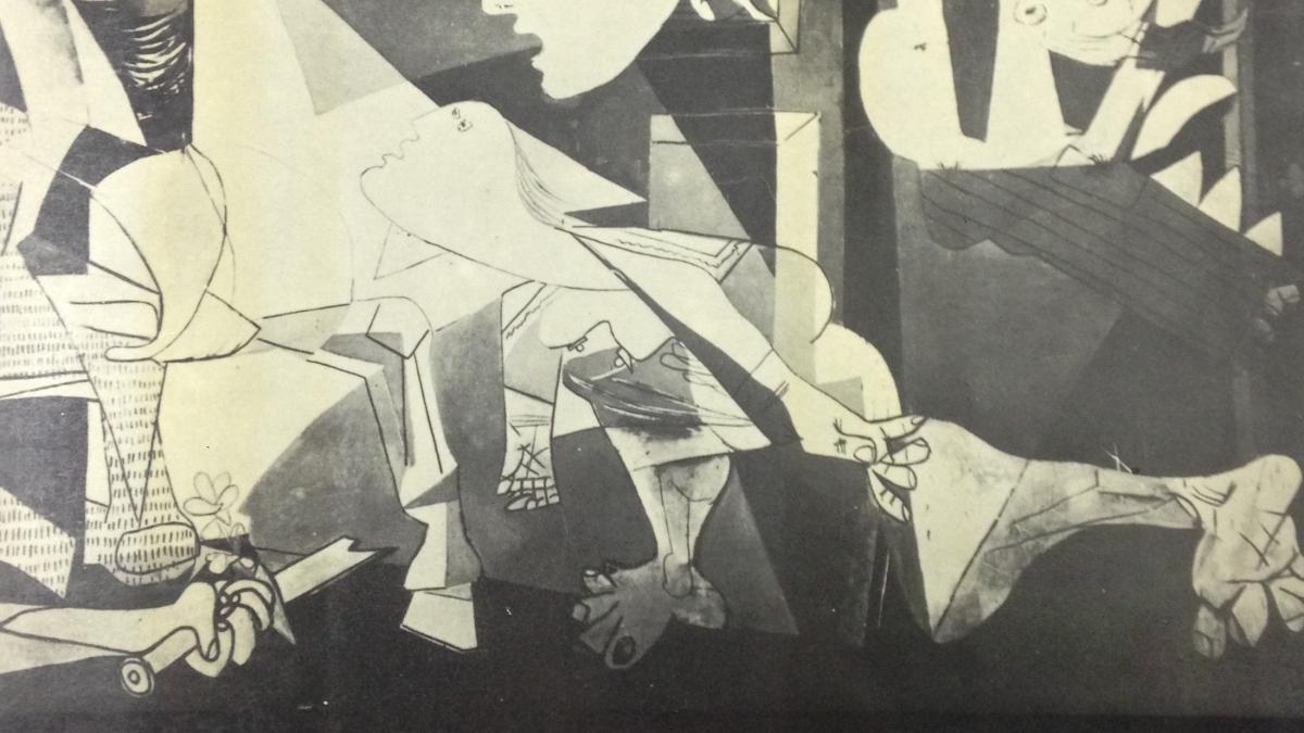 Disco de vinilo de canciones de la guerra civil española con cubierta ilustrada con Guernica.