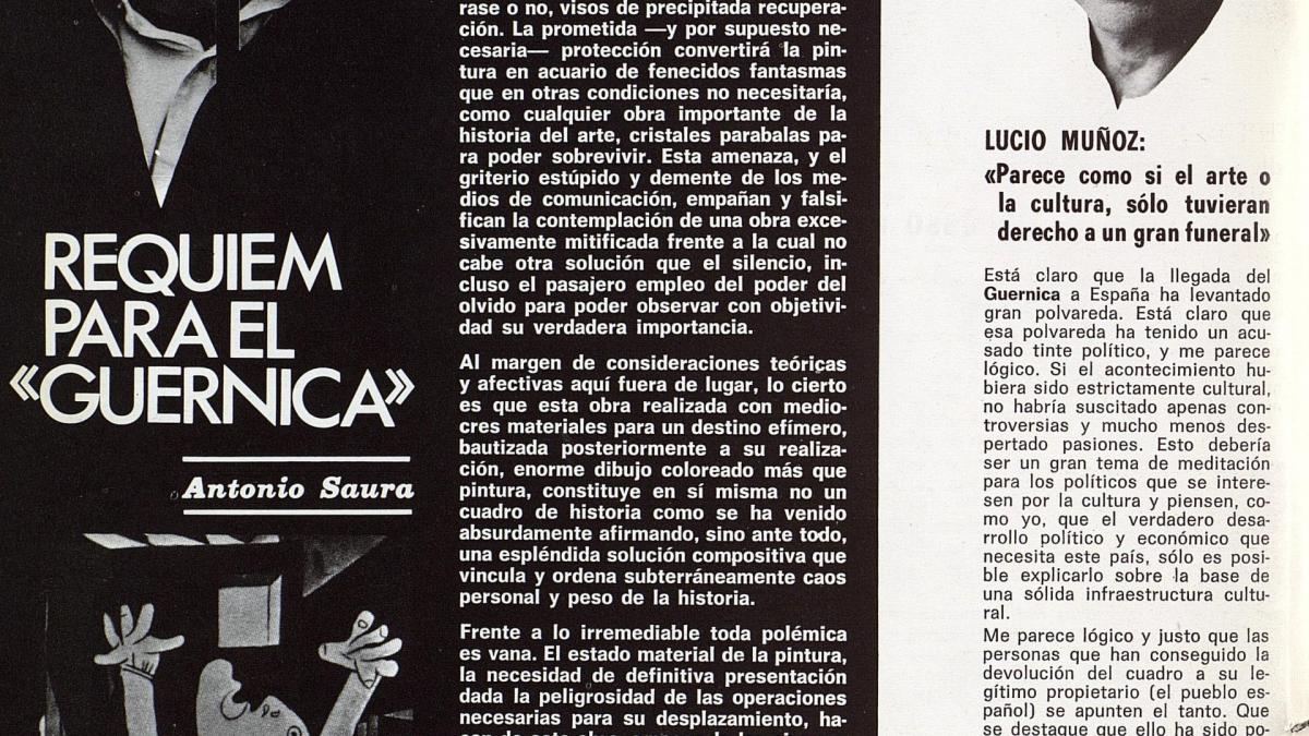 «¿Considera la llega del "Guernica" una hecho más político que artístico?: encuesta», Guadalimar, Año 7, n.º 62, 1981, pp. 44-45.