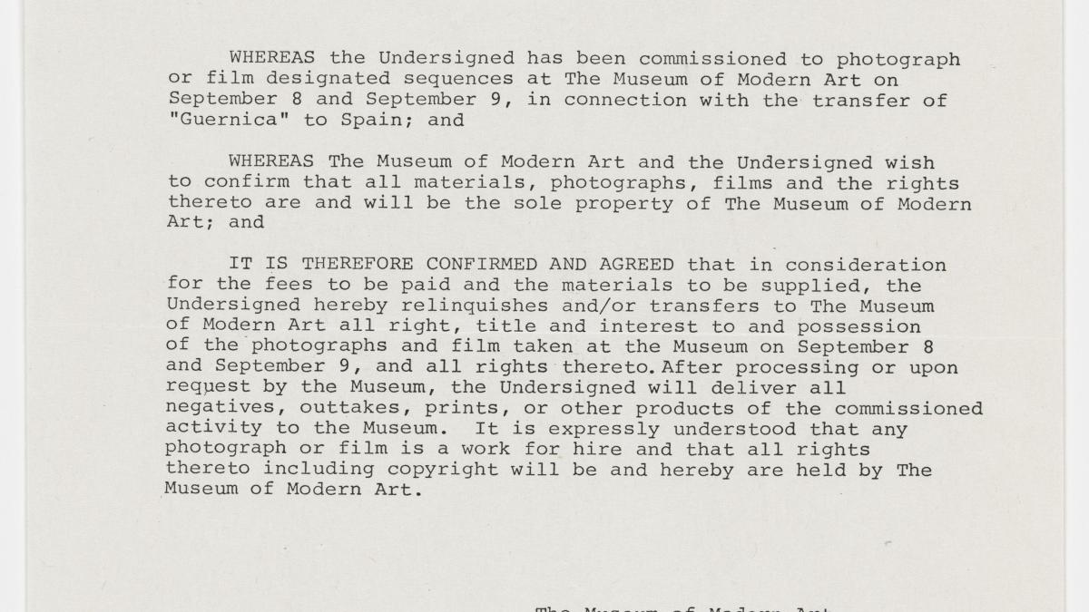 Contrato de conformidad entre el Museum of Modern Art de Nueva York y el abajo firmante