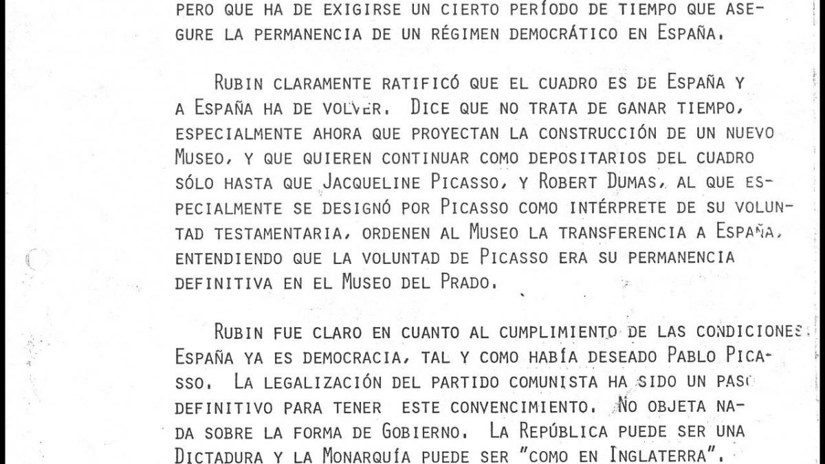Resumen de la conversación mantenida por el abogado José Mario Armero y William Rubin, director del departamento de Pintura y Escultura, en el Museum of Modern Art de Nueva York.