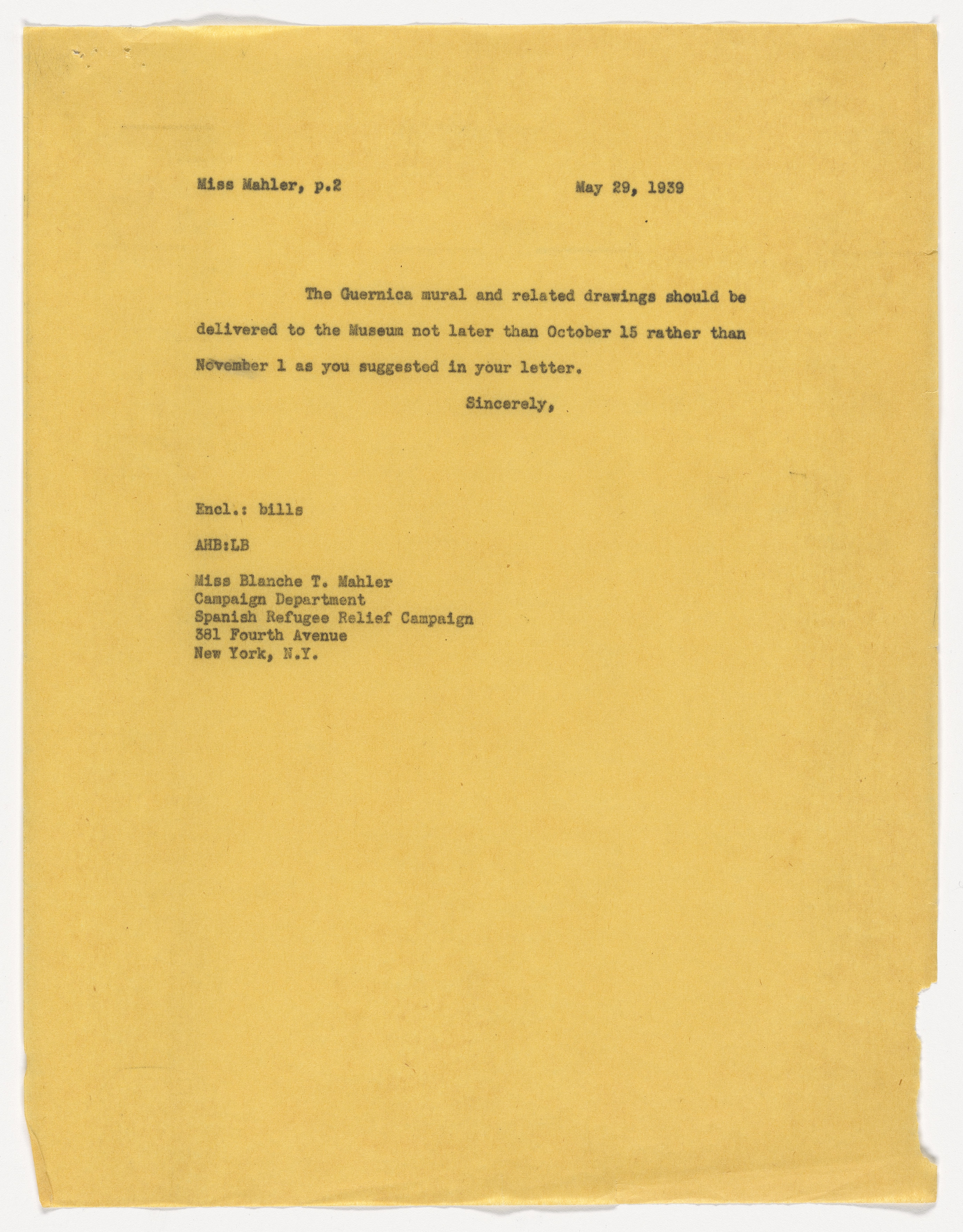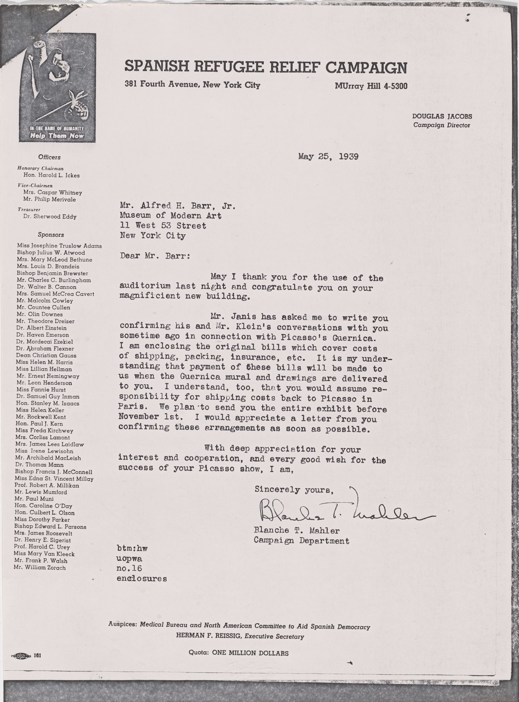 Correspondencia entre la Spanish Refugee Relief Campaign y Alfred H. Barr Jr.