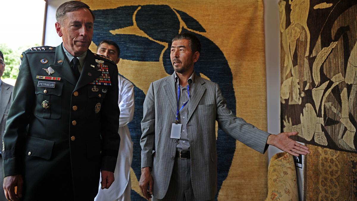 El comandante del ISAF y jefe de la OTAN en Afganistán, David H. Petraeus, visita un mercado de artesanía