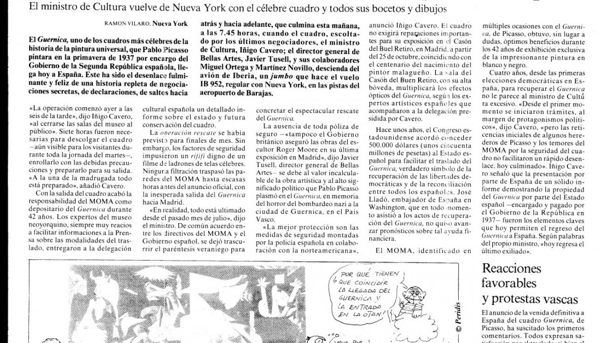 Ramón Vilaró, «El "Guernica" de Pablo Picasso llega hoy, por fin, a España», El País, 10 de septiembre 1981, p. 25.