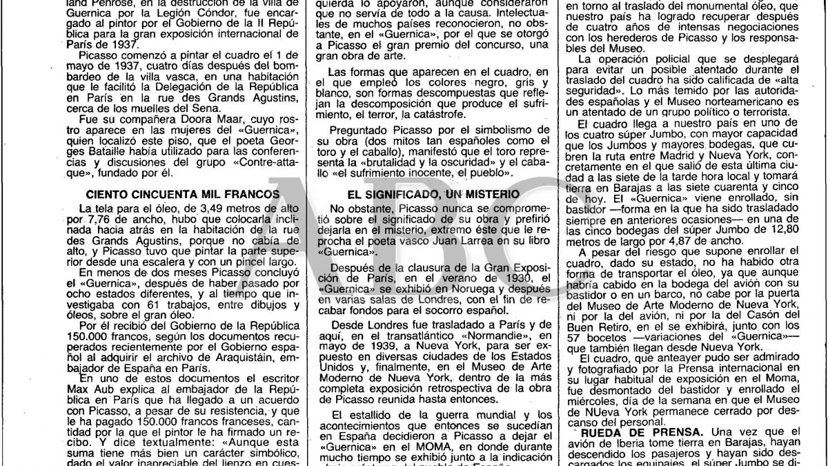 «El 'Guernica', la obra más famosa y polémica del siglo XX», ABC, 10 de septiembre, 1981, p. 4.