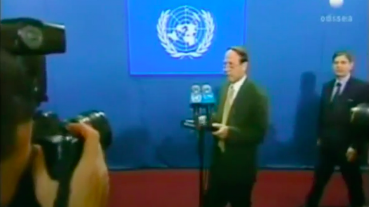 “El tapiz de Guernica oculto con una cortina azul en la ONU”
