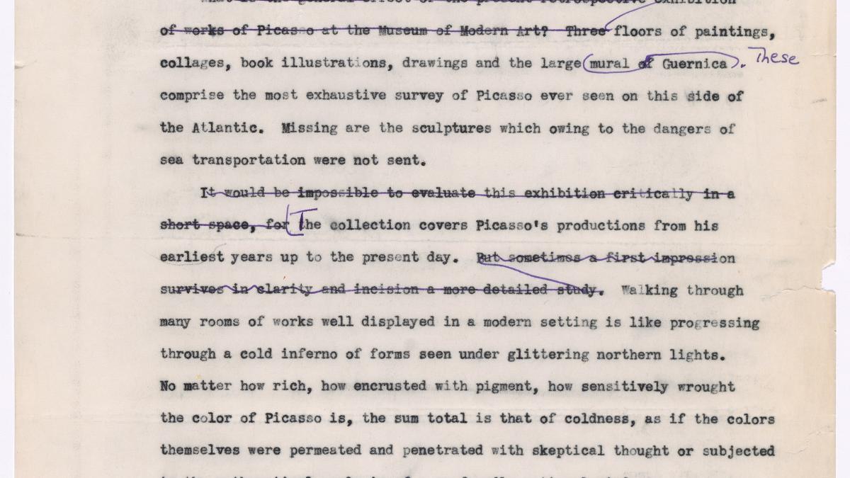 Texto de la conferencia de Charmion von Wiegand «Picasso's last period», impartida en el Museum of Modern Art de Nueva York.