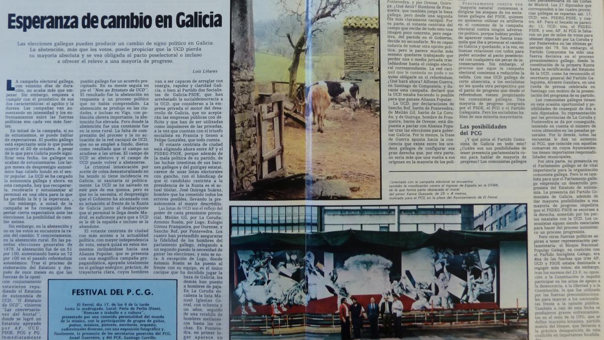 Lois Liñares, «Esperanza de cambio en Galicia», Mundo Obrero, n.º 146, año III, del 9 al 15 de octubre de 1981, pp. 26 y 27.