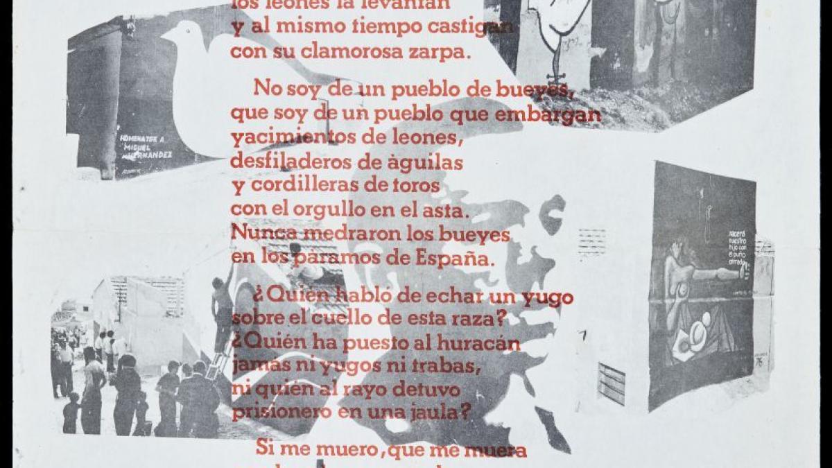 Cartel con motivo del homenaje a Miguel Hernández donde aparece la reproducción de un mural con réplica de Guernica.