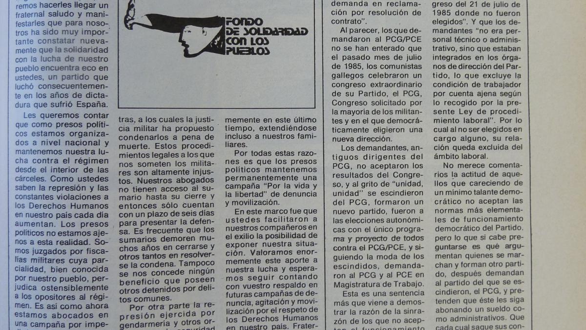 «Fondo de Solidaridad con los Pueblos», Mundo Obrero, n.º 368, año VII, 1986, del 16 al 22 de enero de 1986, p. 47.