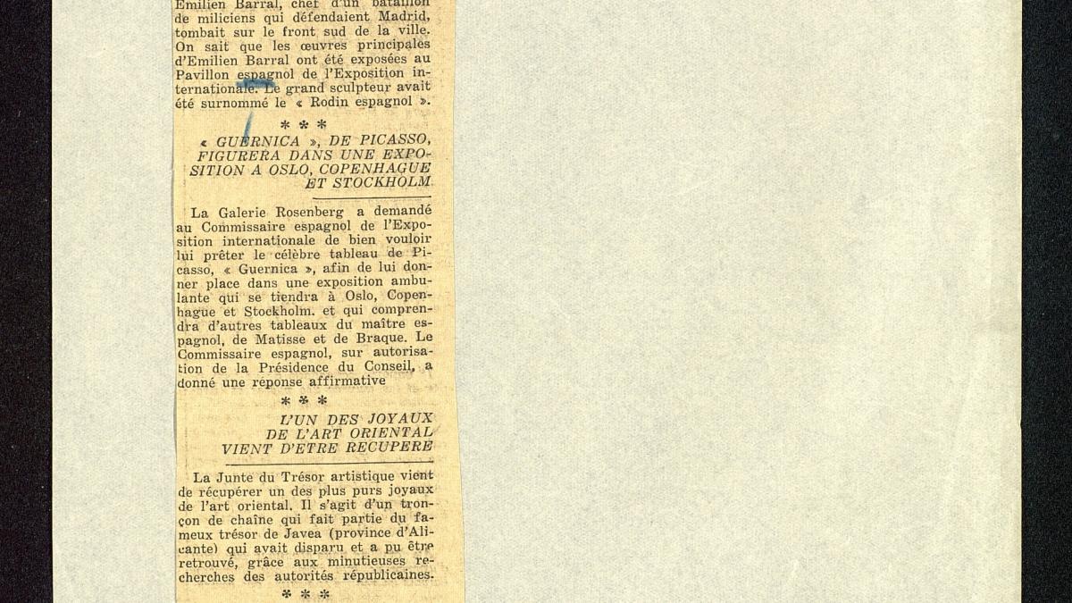 «Guernica de Picasso figurera dans une exposition a Oslo, Copenhage et Stockholm», Alga, sección Echos d'ici et d'ailleurs, 3 de diciembre, 1937.