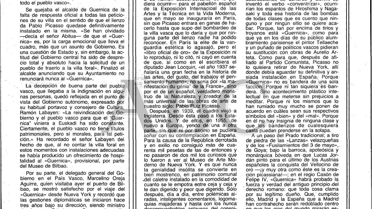 Joaquín De la Puente, «'Guernica', por su legítimo dueño», ABC, 11 de septiembre, 1981, p. 29.