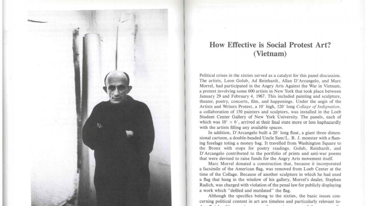 Esta es una de las dos versiones publicadas de la disputa entre los artistas Leon Golub y Ad Reinhardt a propósito de Guernica: “How Effective is Social Protest Art?” [¿Cuán efectivo es el arte de protesta social?], retransmitida por la emisora neoyorquina WBAI el 10 de agosto de 1967.