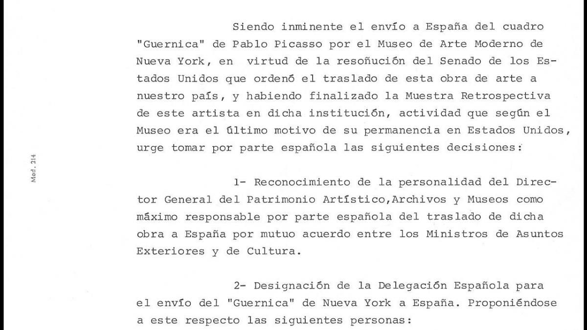 Informe de necesidades relativas al traslado de Guernica desde Nueva York a España