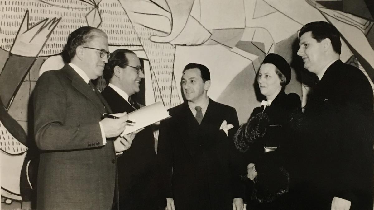 Julio Álvarez del Vayo, ministro de Estado, en la inauguración de la exposición Picasso’s Guernica de la Valentine Gallery