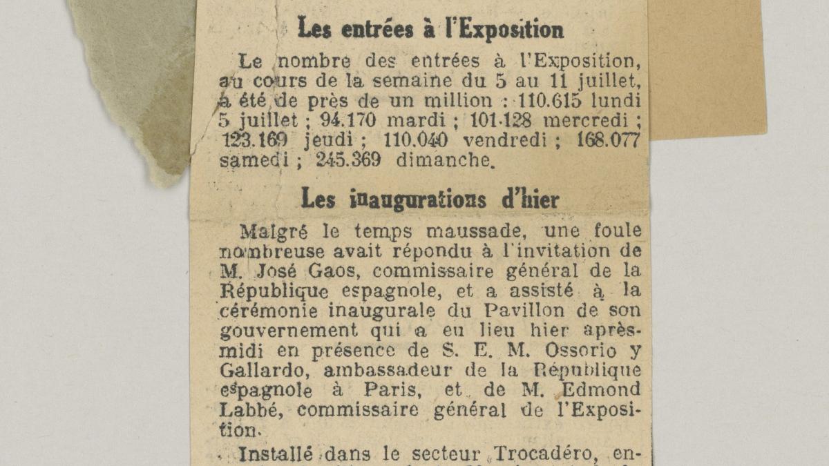 «Les entrées à l'exposition», Bulletin des Halles, 13 de julio, 1937.