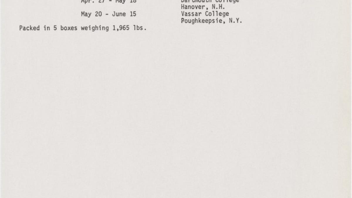 Listado de obras, fechas y centros donde itinera la exposición Picasso: Forty Years of His Art entre 1941 y 1943, en su tercera edición y que pasa a denominarse Epochs in his Art.