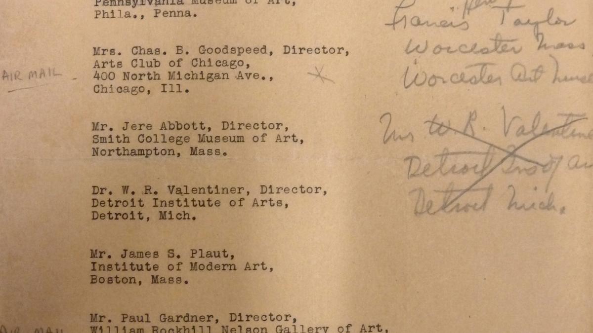 Listado de los museos y sus directores a los que la Spanish Refugee Relief Campaign ofrece participar en la gira de Picasso's Guernica