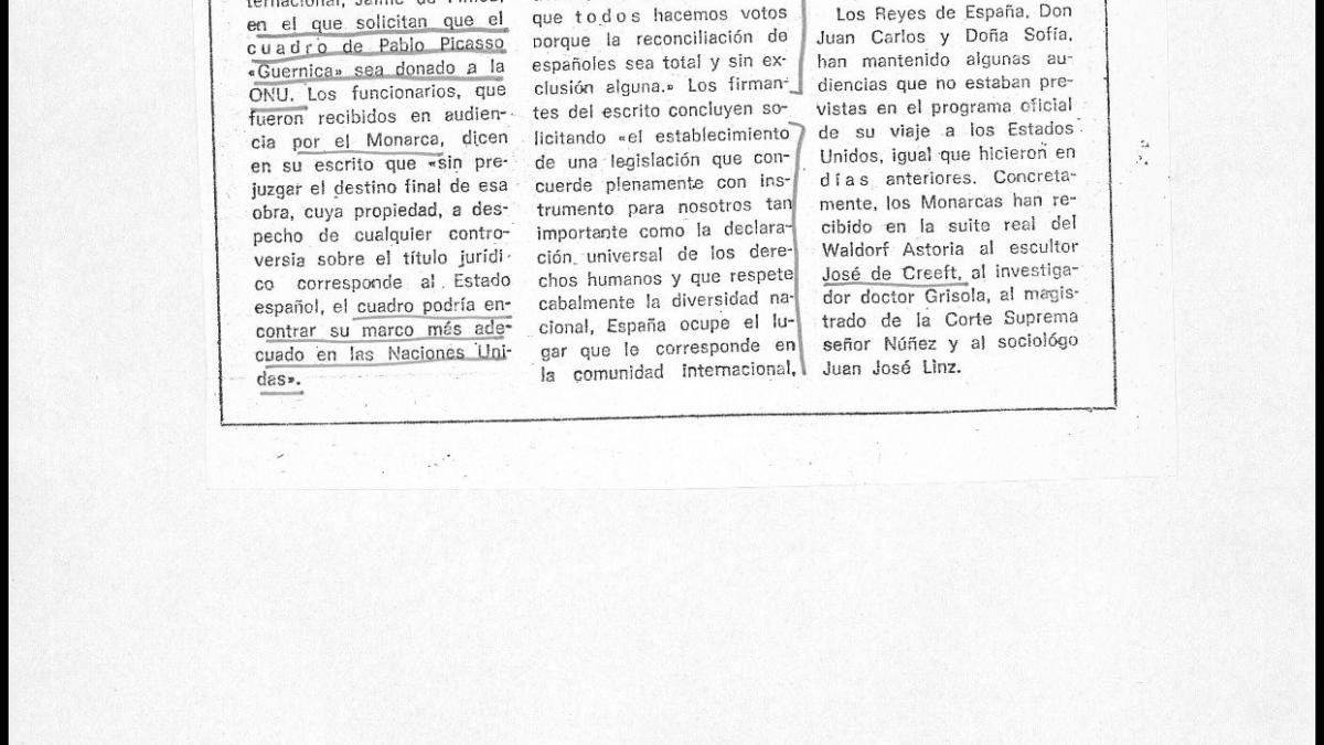 «Los funcionarios que pedían la donación de Guernica a la ONU recibidos por el rey», Arriba, 6 de junio, 1976.