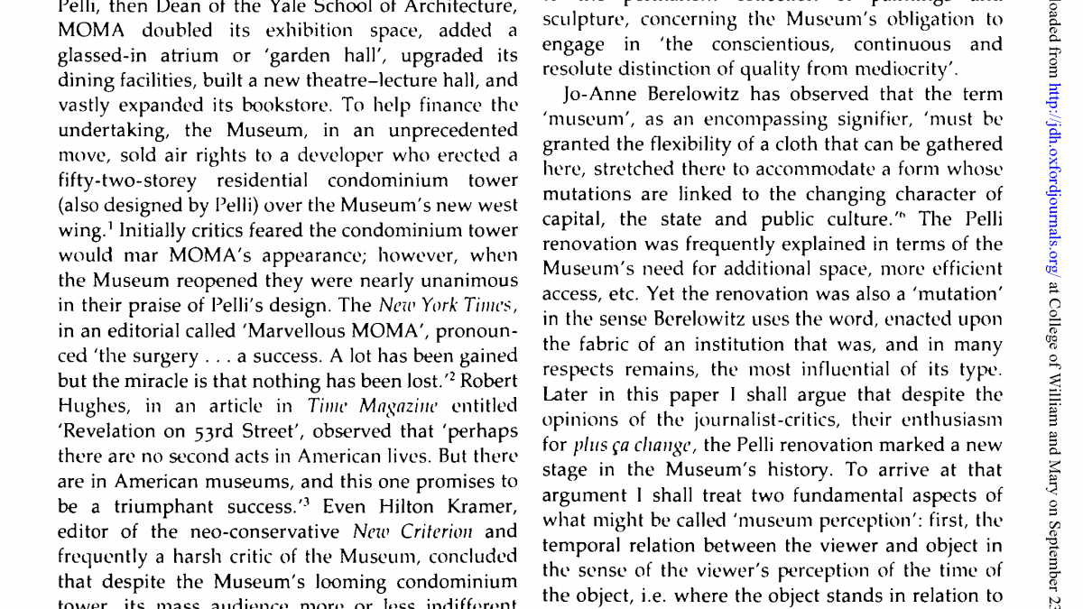 “The Museum of Modern Art: The Past’s Future” [El Museo de Arte Moderno. El futuro del pasado]