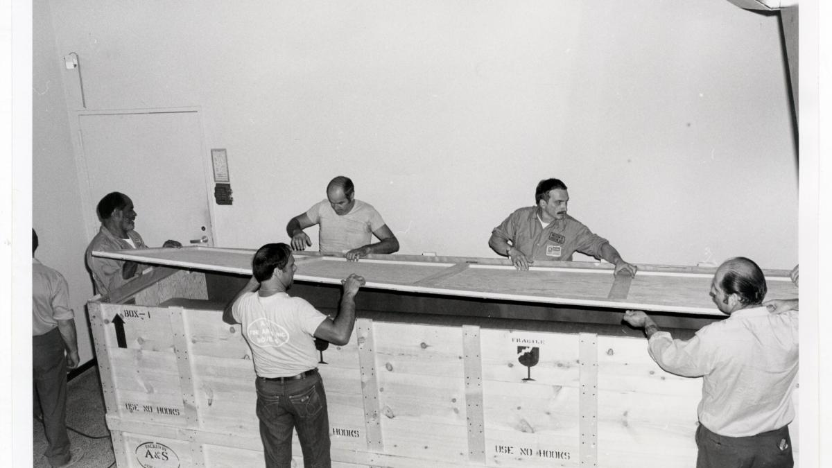 Operarios cerrando la caja de madera que contiene el lienzo de Guernica en el Museum of Modern Art de Nueva York