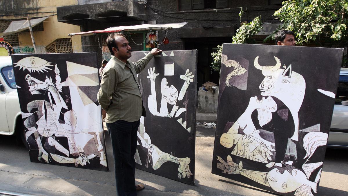 Pancartas con fragmentos de Guernica en una manifestación contra los episodios de violencia en Nandigram