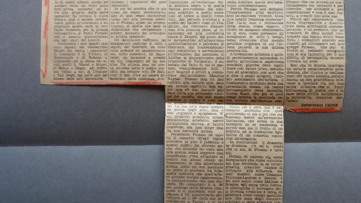 Edmond Cione, «Picasso a Parigi», Il secolo d'Italia, 13 de julio, 1955.