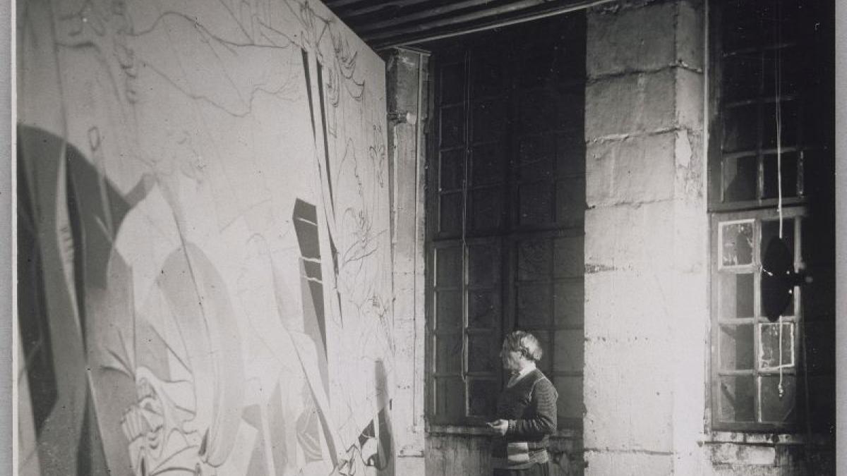 Picasso fotografiado por Dora Maar de pie ante Guernica