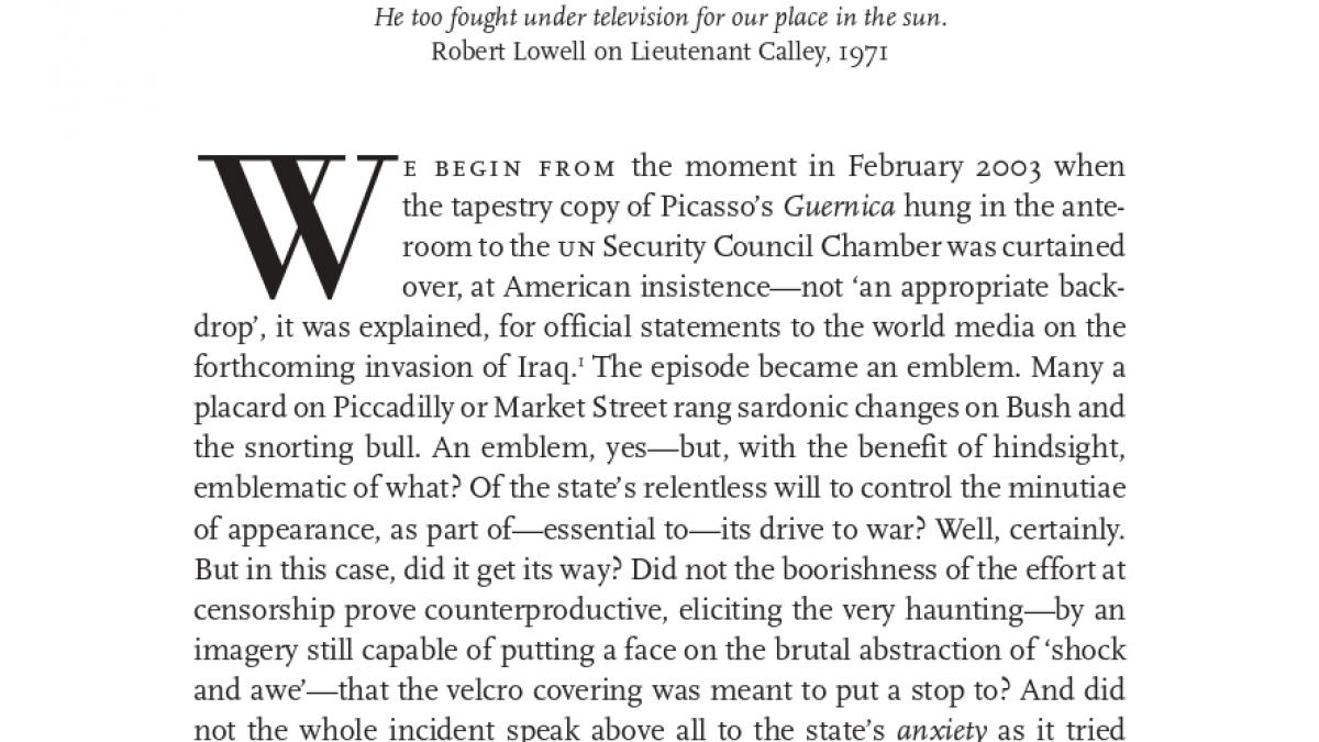 Esta versión más extensa de los panfletos preparados para las manifestaciones contra la guerra de Irak se convertiría en el primer capítulo del libro Afflicted Powers [Poderes afligidos] en 2005. Algunas reacciones a los argumentos de Retort son: Michael Hardt, “Incisive Retort: Michael Hardt on Afflicted Powers” [Retort incisivo. Michael Hardt sobre Poderes afligidos] (Artforum, vol. 44, n.º 2, octubre, 2005, pp. 35-36); Gopal Balakrishnan, “States of War” [Estados de guerra] (New Left Review, n. º 36, noviembre-diciembre, 2005, pp. 5-32); Julian Stallabrass, “Spectacle and Terror” [Espectáculo y terror] (New Left Review, n. º 37, enero-febrero, 2006, pp. 87-106) y “An Exchange on Afflicted Powers: Capital and Spectacle in a New Age of War” [Un intercambio en torno a Poderes afligidos. Capital y espectáculo en una nueva era de guerra] (October, n.º 115, invierno, 2006, pp. 3-12).