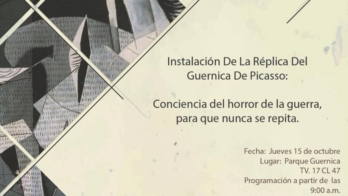Cartel anunciando la instalación de una réplica en cerámica de Guernica en Tesauquillo, Colombia