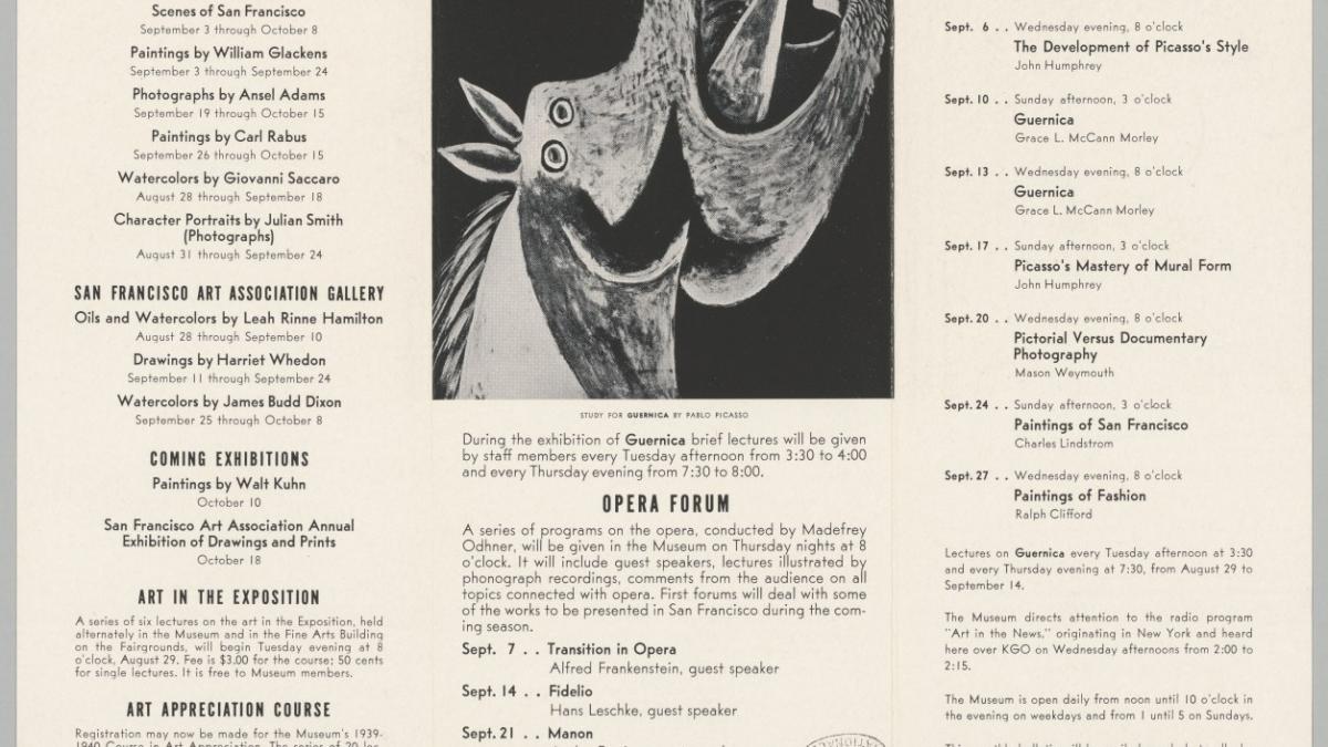 Programa de actividades realizadas en el marco de la exposición Guernica and 59 preparatory studies del San Francisco Museum of Art