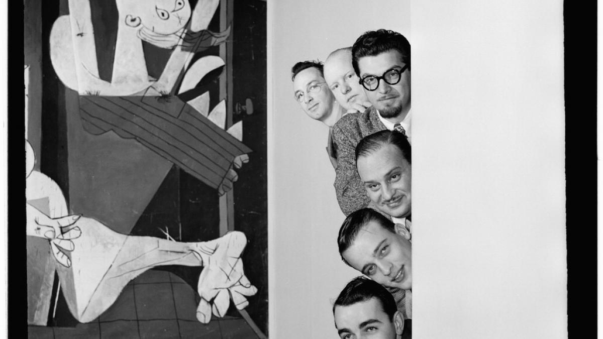 Esta fotografia forma parte de la sesión realizada por William P. Gottlieb en el Museum of Modern Art de Nueva York para la revista musical Down Beat, en cuyo número del 26 de marzo de 1947 publicó el reportaje "Six arrangers examine modern art". La fotografía sirvió de base para la imagen de portada de dicho número, aunque se optó por eliminar la presencia de Guernica a favor de una composición con alusiones musicales.