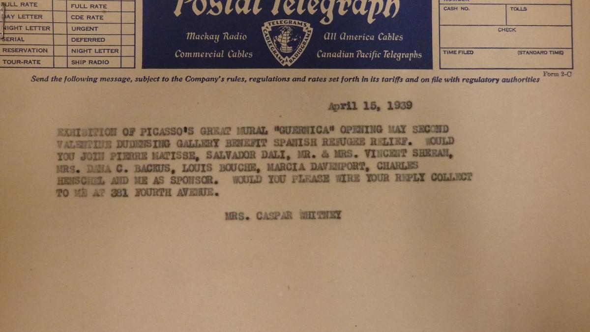Spanish Refugee Relief Association Record, 1935-1957, Part D: Affairs, Box 11, Picasso Exhibit n. 1