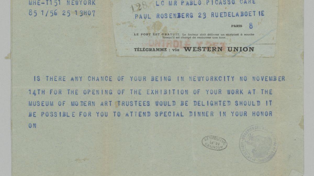 Telegrama de Nelson Rockefeller a Pablo Picasso