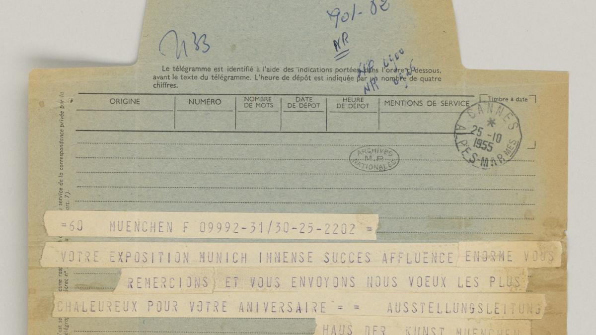 Un remitente desconocido informa a Pablo Picasso del gran éxito de la exposición de Múnich.