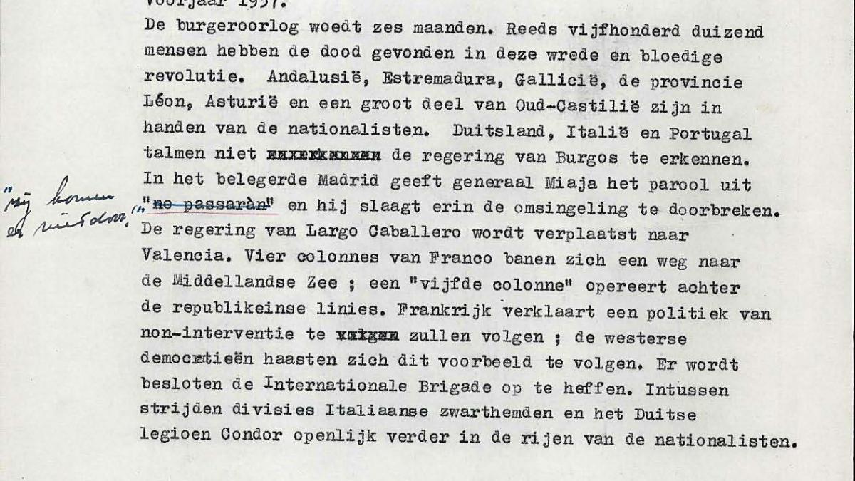 Texto mecanografiado sobre Guernica (traducción al neerlandés).