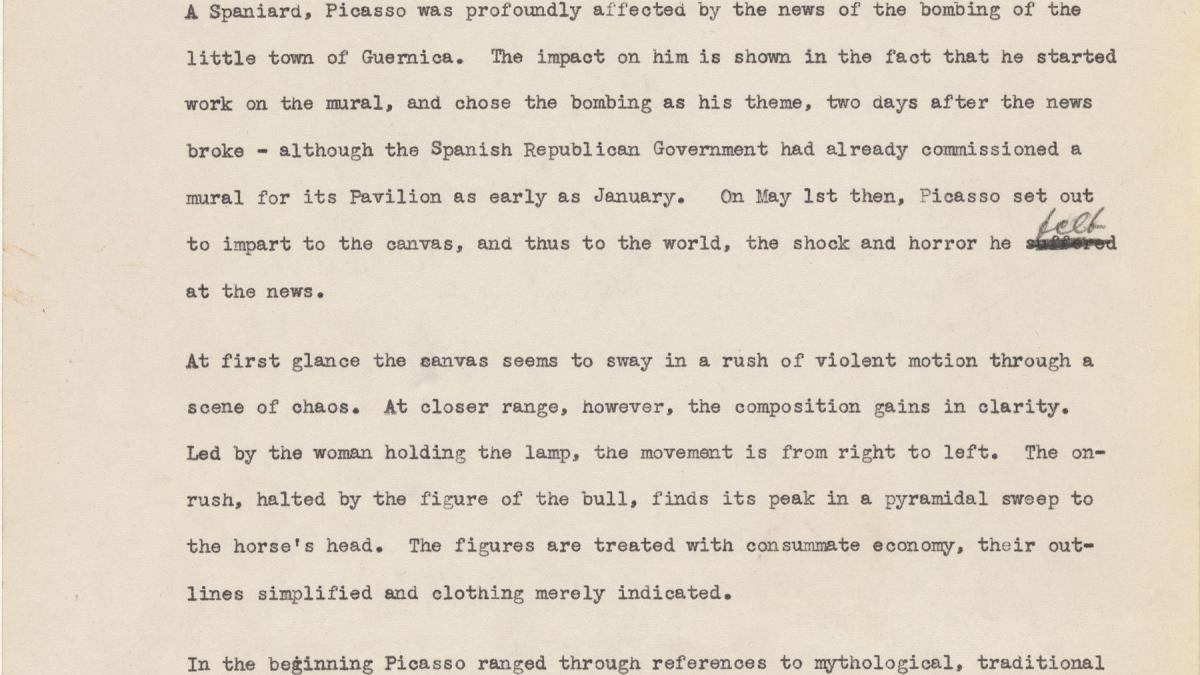 Texto de la cartela de las fotografías de siete estados para la exposición Studies for Guernica