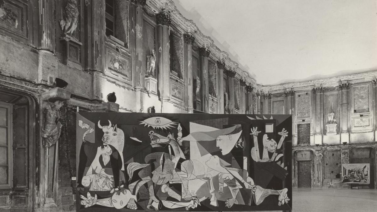 Vista de la instalación de Guernica en el Palazzo Reale de Milán